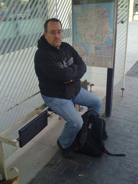 Waiting with T Dog at the bus stop. Figured I would give mobile word press a try.